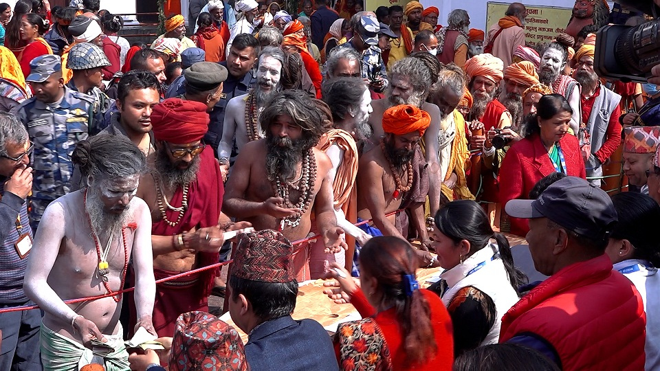 काठमाडाैं, फागुन ५ : महाशिवरात्रिको उपलक्ष्यमा पशुपतिनाथको दर्शनका लागि आएका नागा बाबालगायत साधुसन्तलाई दान द..